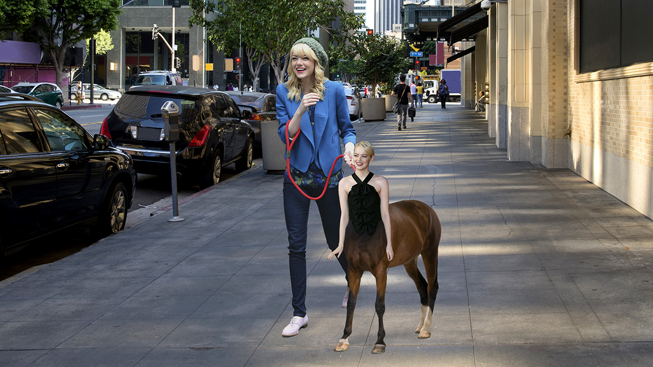 Uh… are we seeing double? Emma Stone and her miniature centaur, Lulu, look so much alike that it’s crazy they’re not actually related. Hey, Emma, if you ever wanted to skip out on a day on a film set where they’re only shooting you from the waist up, just send Lulu in your place! Nobody would know the difference, as long as Lulu doesn’t let out one of its low, gravely wails or try to eat the eyes of the production crew with its long serrated teeth!