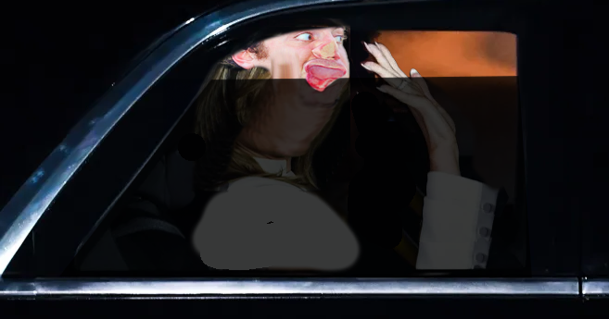 2. When She’s Being Driven To Trump’s Inauguration And Her Hat Is Too Big For Her Head To Fit In The Limousine So She Drives With It Hanging Out Of The Window And Accidentally Hits The Power Window Switch