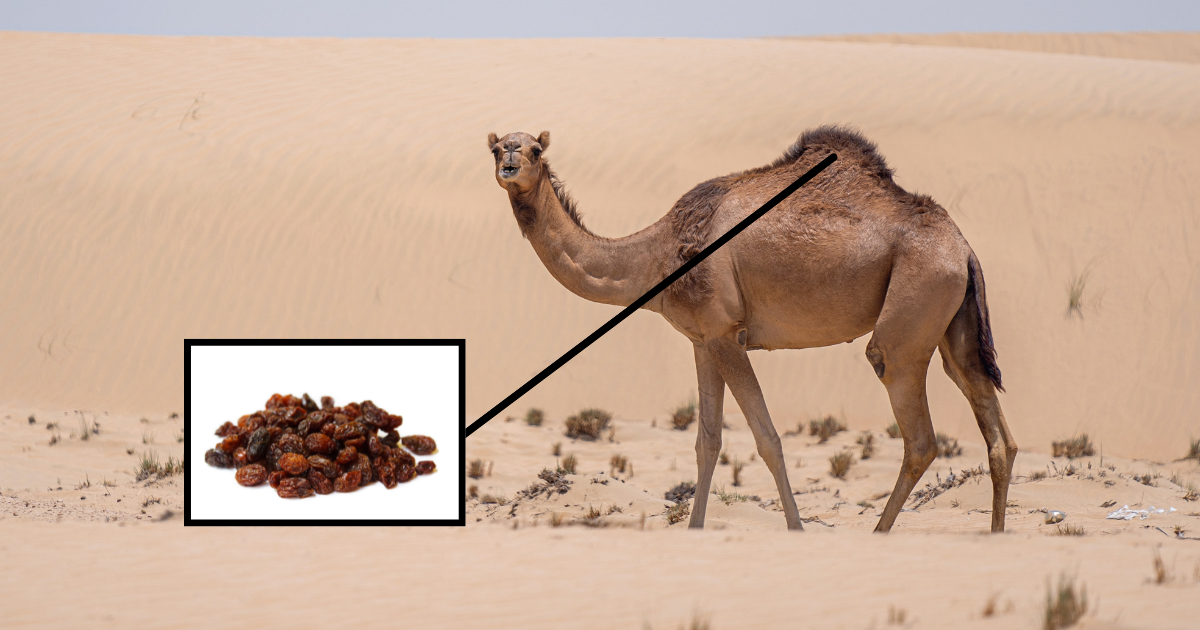 You can be forgiven for believing the oft-repeated urban legend that a camel’s hump is filled with water, a “fact” that many people learn as children and continue to innocently spread. After all, camels do live in the desert, and it would make sense if their humps were filled with water. But biologists are aiming to put this widespread myth to bed and educate the public that camels’ humps are actually filled to the brim with a bunch of raisins.