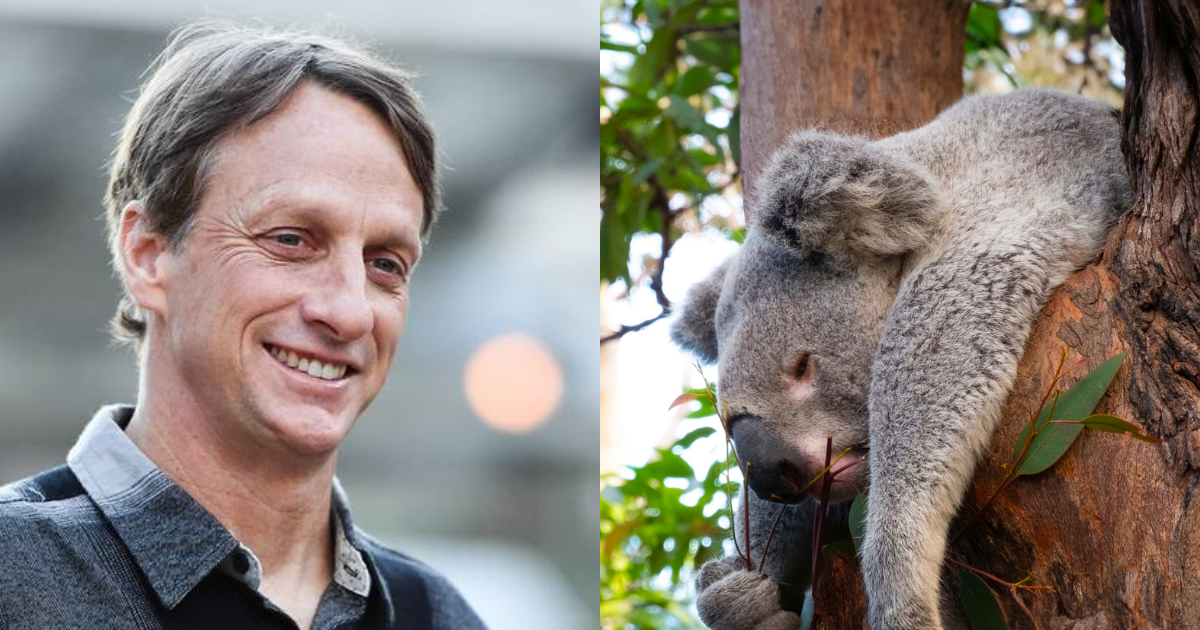 When seven-year-old koala Buzzy was diagnosed with leukemia, his life began to seem pretty bleak. He could no longer spend his time doing his favorite activities like eating leaves and scratching other koalas with his huge claws, and it was clearly making him depressed. That’s when the Make-A-Wish Foundation stepped up in a major way, which is apparently something they do for non-humans, and made a miracle happen: They got legendary skateboarder Tony Hawk to fly to Australia and spend the day with Buzzy to give him a once-in-a-lifetime pro-skater adventure!