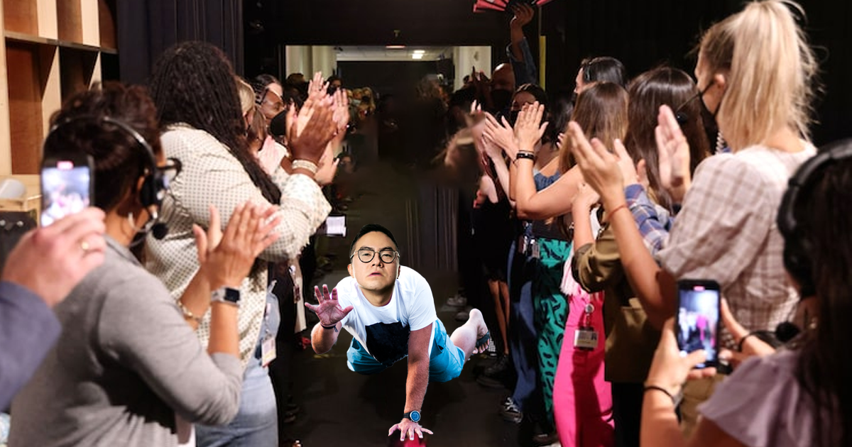 The Jennifer Hudson Show is famous for its viral “spirit tunnels,” where the talk show’s guests dance down a hall surrounded by singing and clapping staff members. However, it seems like the latest guest might be in over his head, because an exhausted Bowen Yang is currently crawling down mile 11 of The Jennifer Hudson show spirit tunnel.