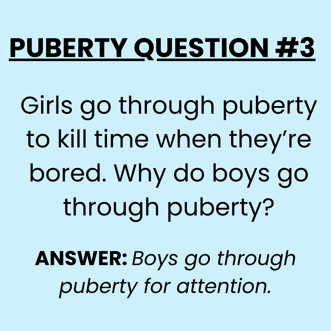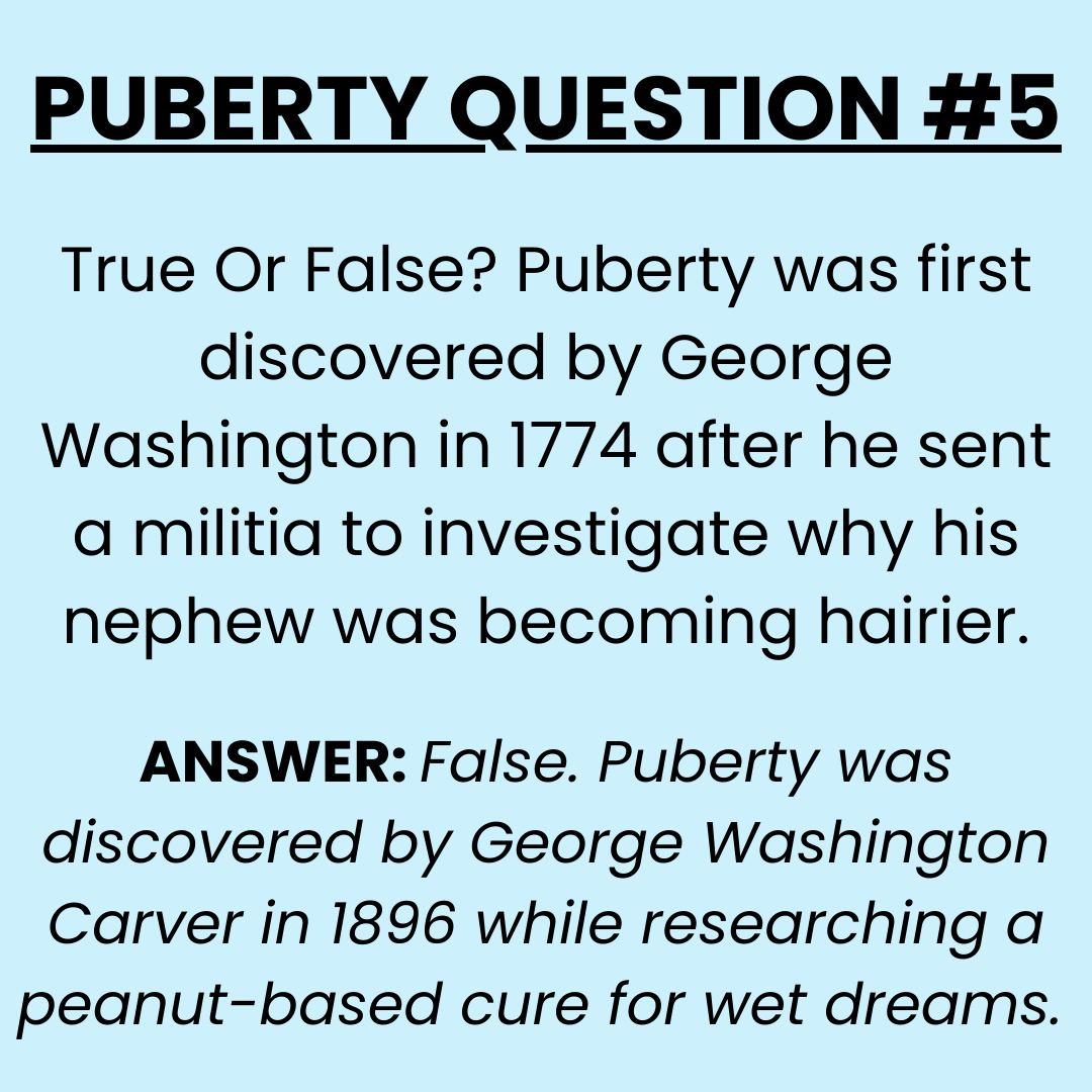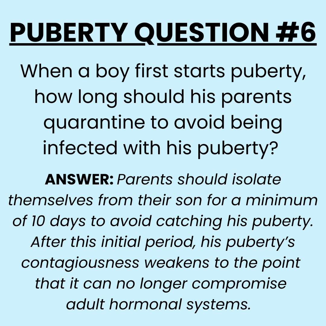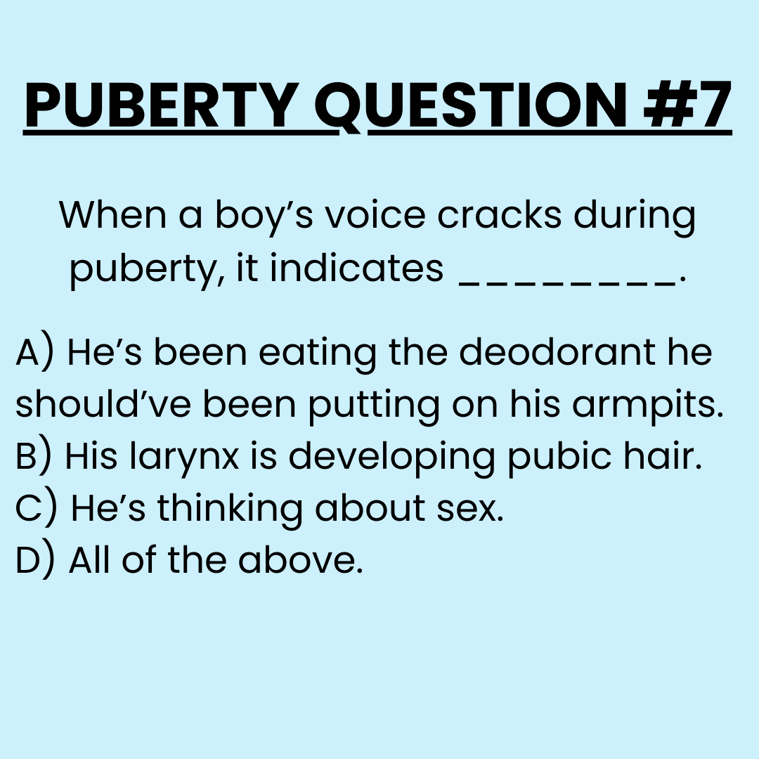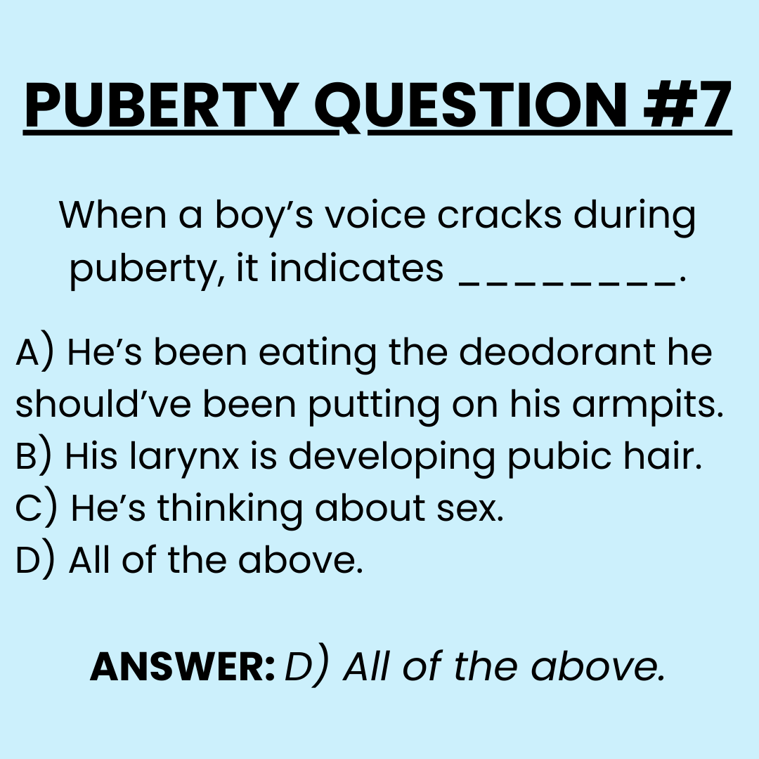 Is your son a pubescence genius or imbecile?! Time to find out! Put the boy’s puberty knowledge to the ultimate test with these puberty brain-teasers!