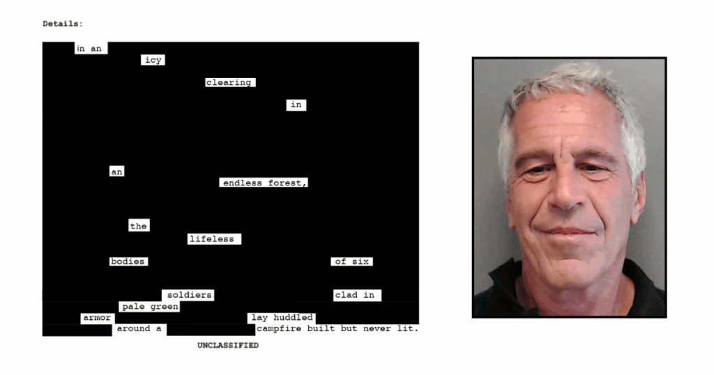 Actually Pretty Neat: The Latest Epstein Files Dump Has Been Redacted In A Way Where The Remaining Words Tell An Epic Story About An Icy Kingdom Ruled By A Giant Skeleton King Named ‘Archmarian Of The Frostland’