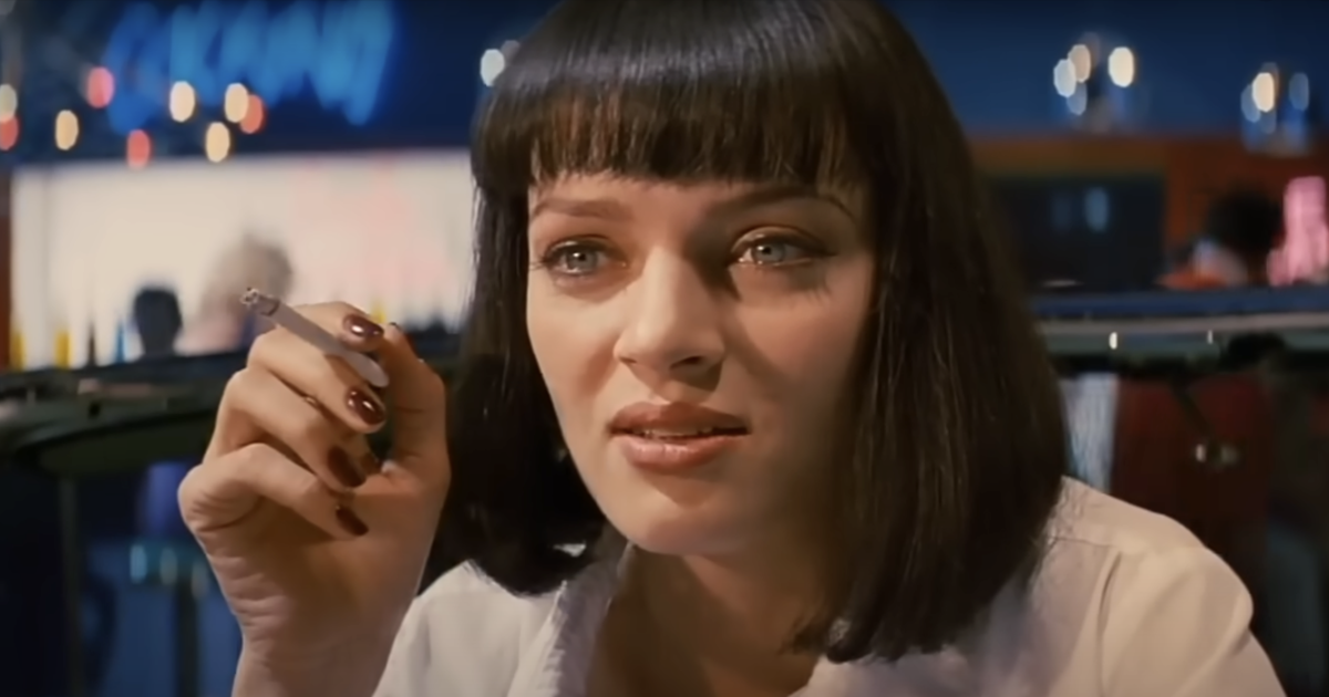 Uma Thurman (Mia Wallace): Whenever someone in Hollywood writes a movie script, it’s always big news. The second a script is finished, all of the major studios start vying to be the ones who put it out, and all of the actors and actresses start begging to be in it. It can be about anything: the history of Tums, how sales tax rates are different in different states…anything. And it always makes $200 million.